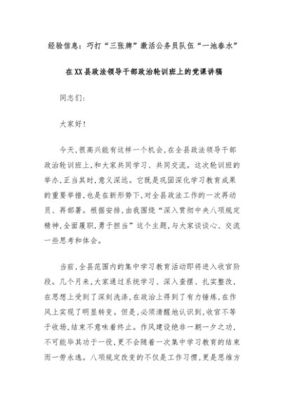【七哥公文】2025年:经验信息:巧打“三张牌”激活公务员队伍“一池春水”+更多免费公文+VX:QiGeGongWen2024