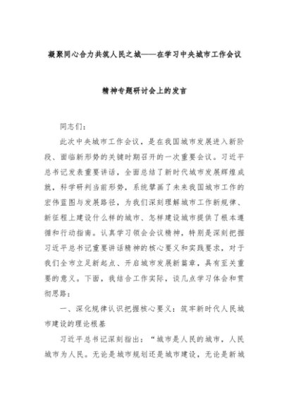 【七哥公文】2025年:凝聚同心合力共筑人民之城——在学习中央城市工作会议精神专题研讨会上的发言+更多免费公文+VX:QiGeGongWen2024