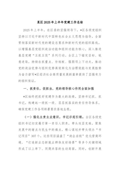 / 【七哥公文】2025年:某区2025年上半年党建工作总结+更多免费公文+VX:QiGeGongWen2024