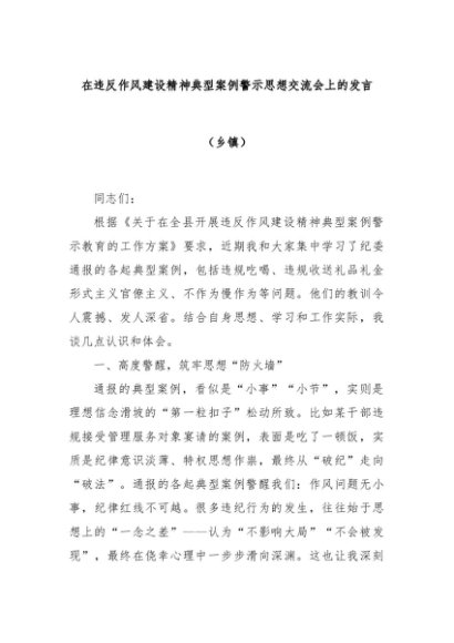 【七哥公文】2025年:在违反作风建设精神典型案例警示思想交流会上的发言(乡镇)+更多免费公文+VX:QiGeGongWen2024