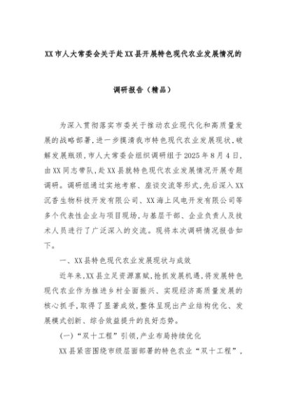 【七哥公文】2025年:XX市人大常委会关于赴XX县开展特色现代农业发展情况的调研报告(精品)+更多免费公文+VX:QiGeGongWen2024