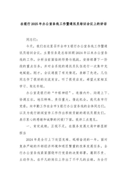 【七哥公文】2025年:在银行2025年办公室条线工作暨通讯员培训会议上的讲话+更多免费公文+VX:QiGeGongWen2024