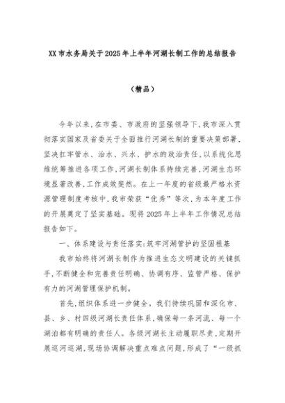 【七哥公文】2025年:XX市水务局关于2025年上半年河湖长制工作的总结报告(精品)+更多免费公文+VX:QiGeGongWen2024