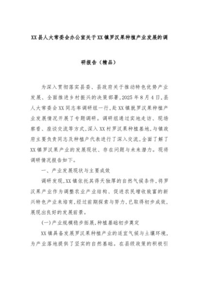 【七哥公文】2025年:XX县人大常委会办公室关于XX镇罗汉果种植产业发展的调研报告(精品)+更多免费公文+VX:QiGeGongWen2024