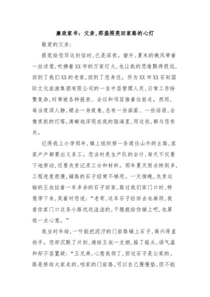 / 【七哥公文】2025年:廉政家书:父亲,那盏照亮回家路的心灯+更多免费公文+VX:QiGeGongWen2024