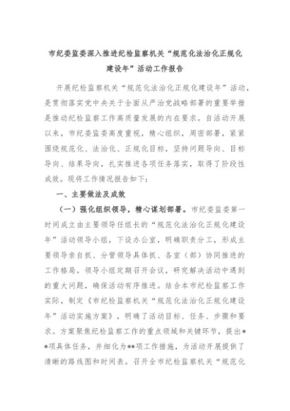 【七哥公文】2025年:市纪委监委深入推进纪检监察机关“规范化法治化正规化建设年”活动工作报告+更多免费公文+VX:QiGeGongWen2024