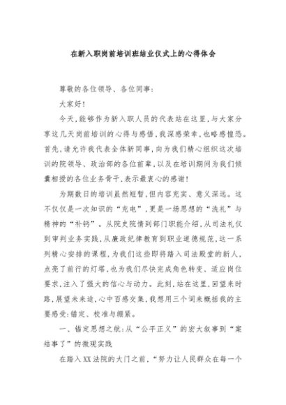 【七哥公文】2025年:在新入职岗前培训班结业仪式上的心得体会+更多免费公文+VX:QiGeGongWen2024