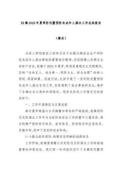 【七哥公文】2025年:XX镇2025年夏季防汛暨预防未成年人溺水工作总结报告(精品)+更多免费公文+VX:QiGeGongWen2024