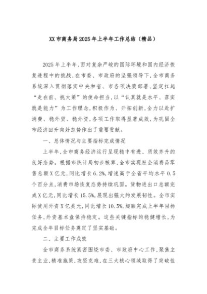 / 【七哥公文】2025年:XX市商务局2025年上半年工作总结(精品)+更多免费公文+VX:QiGeGongWen2024