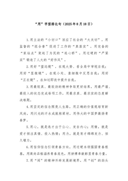 / 【七哥公文】2025年:“用”字型排比句(2025年8月18日)+更多免费公文+VX:QiGeGongWen2024