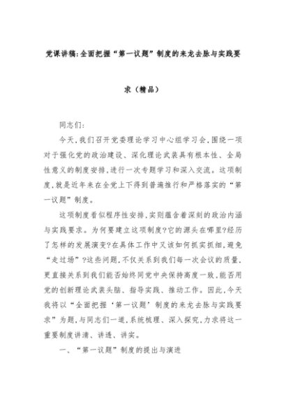 【七哥公文】2025年:党课讲稿:全面把握“第一议题”制度的来龙去脉与实践要求(精品)+更多免费公文+VX:QiGeGongWen2024