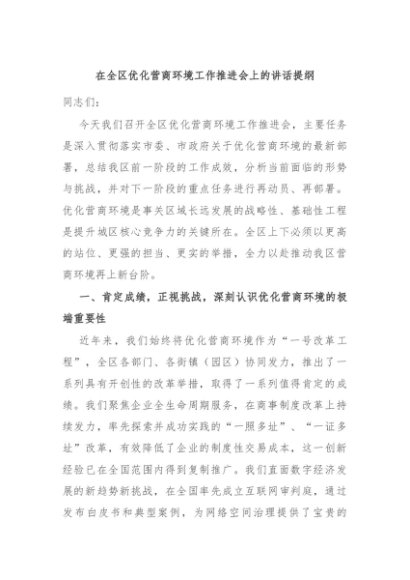 / 【七哥公文】2025年:在全区优化营商环境工作推进会上的讲话提纲+更多免费公文+VX:QiGeGongWen2024