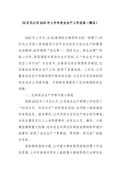 【七哥公文】2025年:XX石化公司2025年上半年安全生产工作总结(精品)+更多免费公文+VX:QiGeGongWen2024