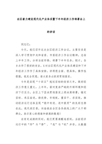 【七哥公文】2025年:在区着力建设现代化产业体系暨下半年经济工作部署会上的讲话+更多免费公文+VX:QiGeGongWen2024