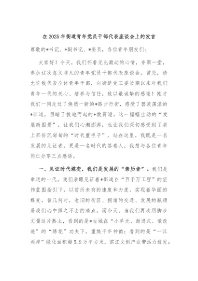 / 【七哥公文】2025年:在2025年街道青年党员干部代表座谈会上的发言+更多免费公文+VX:QiGeGongWen2024