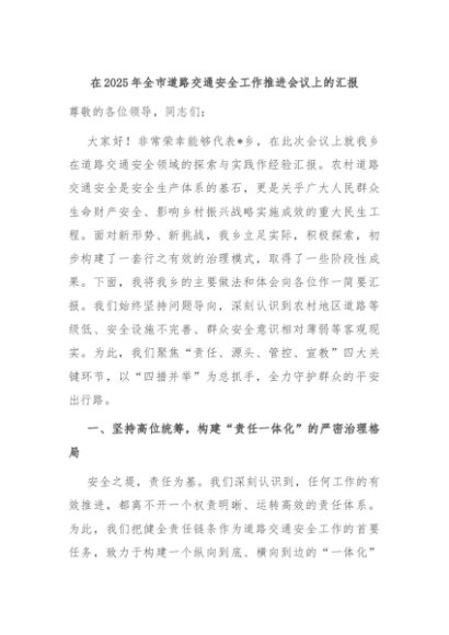 / 【七哥公文】2025年:在2025年全市道路交通安全工作推进会议上的汇报+更多免费公文+VX:QiGeGongWen2024