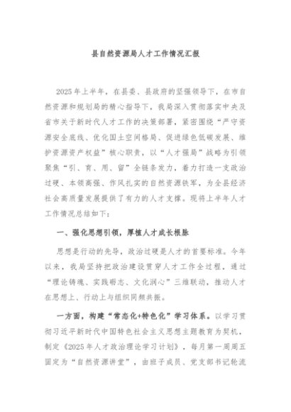 / 【七哥公文】2025年:县自然资源局人才工作情况汇报+更多免费公文+VX:QiGeGongWen2024