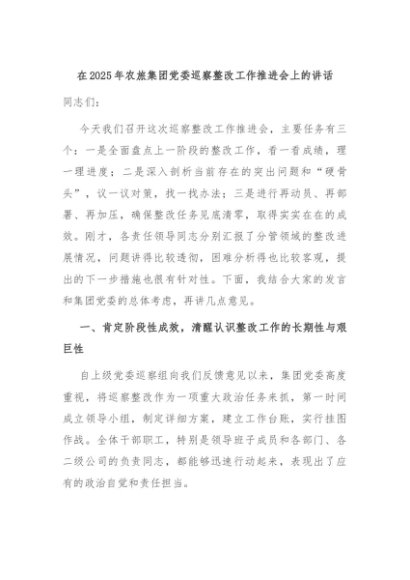 【七哥公文】2025年:在2025年农旅集团党委巡察整改工作推进会上的讲话+更多免费公文+VX:QiGeGongWen2024