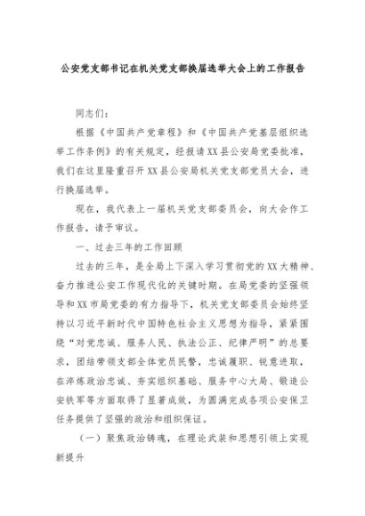 【七哥公文】2025年:公安党支部书记在机关党支部换届选举大会上的工作报告+更多免费公文+VX:QiGeGongWen2024