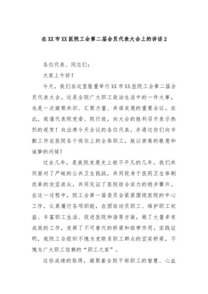 / 【七哥公文】2025年:在XX市XX医院工会第二届会员代表大会上的讲话2+更多免费公文+VX:QiGeGongWen2024