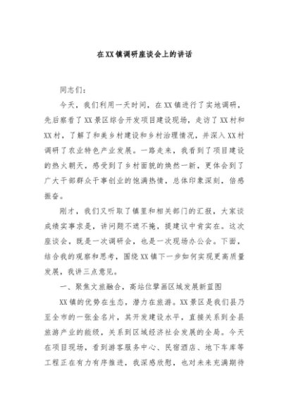 / 【七哥公文】2025年:在XX镇调研座谈会上的讲话+更多免费公文+VX:QiGeGongWen2024