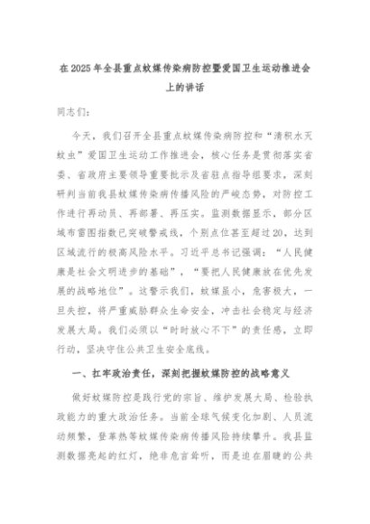 【七哥公文】2025年:在2025年全县重点蚊媒传染病防控暨爱国卫生运动推进会上的讲话+更多免费公文+VX:QiGeGongWen2024