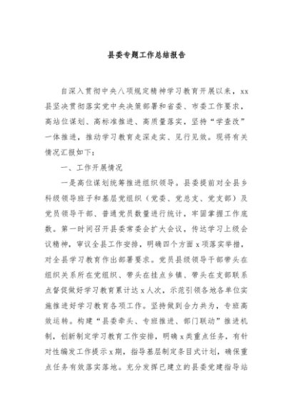 / 【七哥公文】2025年:县委专题工作总结报告+更多免费公文+VX:QiGeGongWen2024
