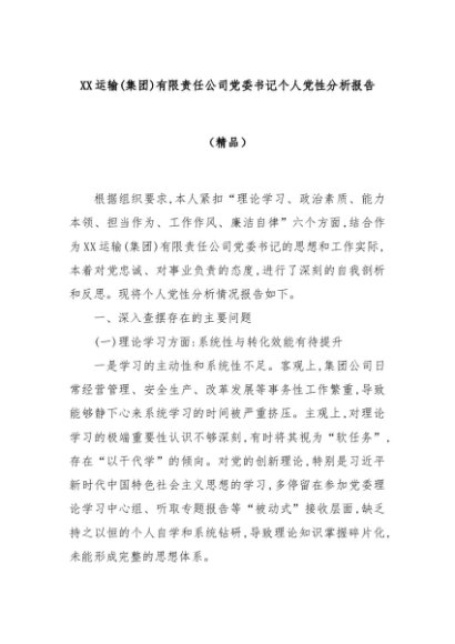 【七哥公文】2025年:XX运输(集团)有限责任公司党委书记个人党性分析报告(精品)+更多免费公文+VX:QiGeGongWen2024