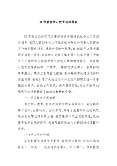 【七哥公文】2025年:XX市政协学习教育总结报告+更多免费公文+VX:QiGeGongWen2024