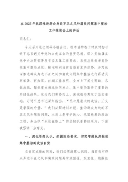 【七哥公文】2025年:在2025年纵深推进群众身边不正之风和腐败问题集中整治工作推进会上的讲话+更多免费公文+VX:QiGeGongWen2024