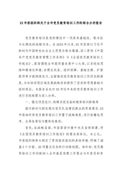 【七哥公文】2025年:XX市委组织部关于全市党员教育培训工作的综合分析报告+更多免费公文+VX:QiGeGongWen2024
