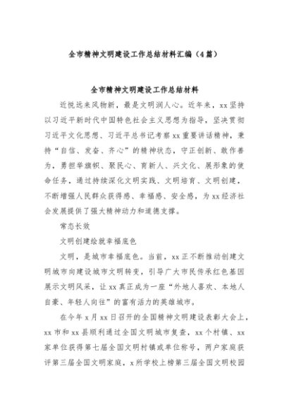 / 【七哥公文】2025年:(4篇)全市精神文明建设工作总结材料汇编+更多免费公文+VX:QiGeGongWen2024