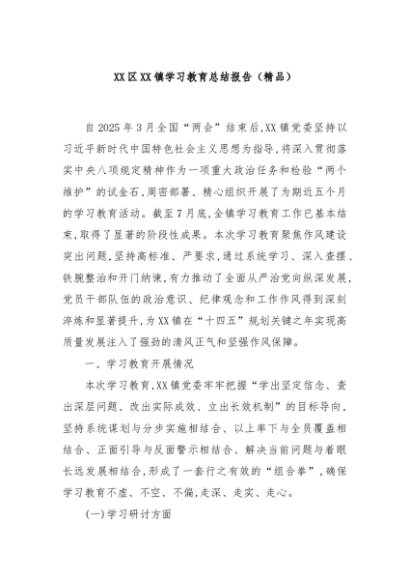 / 【七哥公文】2025年:XX区XX镇学习教育总结报告(精品)+更多免费公文+VX:QiGeGongWen2024