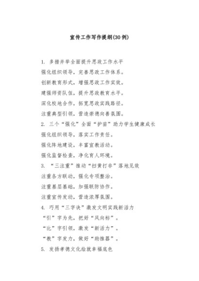 【七哥公文】2025年:(30例)宣传工作写作提纲+更多免费公文+VX:QiGeGongWen2024