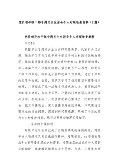 【七哥公文】2025年:(2篇)党员领导按干部专题民主生活会个人对照检查材料+更多免费公文+VX:QiGeGongWen2024