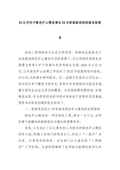 【七哥公文】2025年:XX公司关于绿色矿山建设通过XX专家组验收的经验总结报告+更多免费公文+VX:QiGeGongWen2024