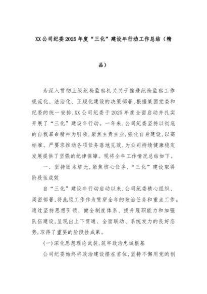 【七哥公文】2025年:XX公司纪委2025年度“三化”建设年行动工作总结(精品)+更多免费公文+VX:QiGeGongWen2024