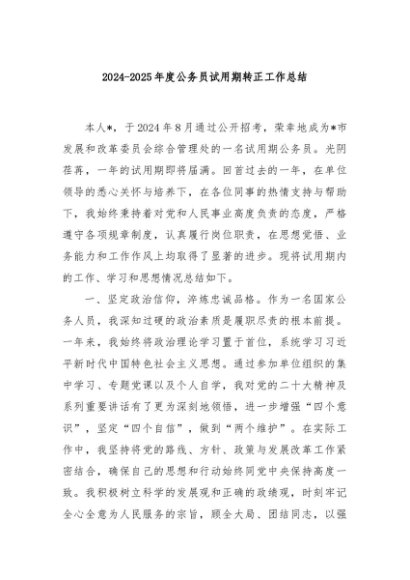 / 【七哥公文】2025年:2024-2025年度公务员试用期转正工作总结+更多免费公文+VX:QiGeGongWen2024