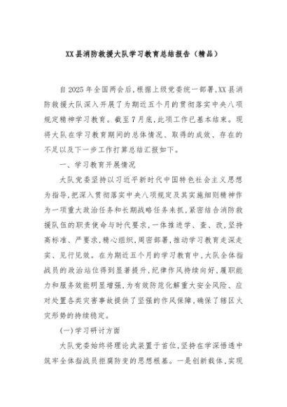 / 【七哥公文】2025年:XX县消防救援大队学习教育总结报告(精品)+更多免费公文+VX:QiGeGongWen2024