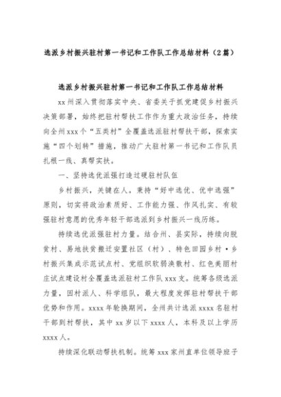 【七哥公文】2025年:(2篇)选派乡村振兴驻村第一书记和工作队工作总结材料+更多免费公文+VX:QiGeGongWen2024