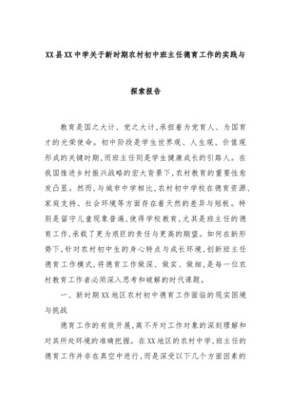 【七哥公文】2025年:XX县XX中学关于新时期农村初中班主任德育工作的实践与探索报告+更多免费公文+VX:QiGeGongWen2024