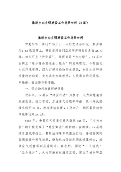 / 【七哥公文】2025年:(2篇)推进生态文明建设工作总结材料+更多免费公文+VX:QiGeGongWen2024