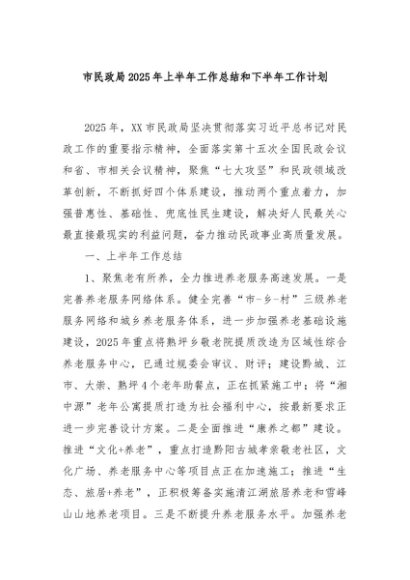 / 【七哥公文】2025年:市民政局2025年上半年工作总结和下半年工作计划+更多免费公文+VX:QiGeGongWen2024