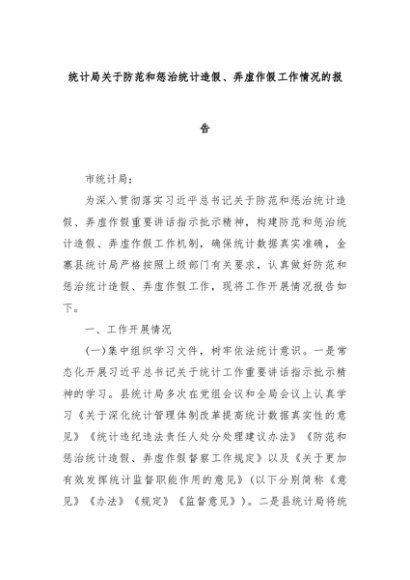 【七哥公文】2025年:统计局关于防范和惩治统计造假、弄虚作假工作情况的报告+更多免费公文+VX:QiGeGongWen2024