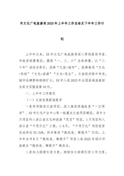 【七哥公文】2025年:市文化广电旅游局2025年上半年工作总结及下半年工作计划+更多免费公文+VX:QiGeGongWen2024