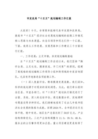 / 【七哥公文】2025年:市发改局“十五五”规划编制工作汇报+更多免费公文+VX:QiGeGongWen2024