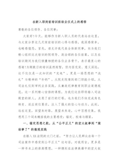 【七哥公文】2025年:在新入职岗前培训班结业仪式上的感悟+更多免费公文+VX:QiGeGongWen2024