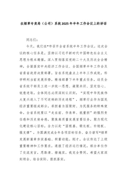 【七哥公文】2025年:在烟草专卖局(公司)系统2025年半年工作会议上的讲话+更多免费公文+VX:QiGeGongWen2024