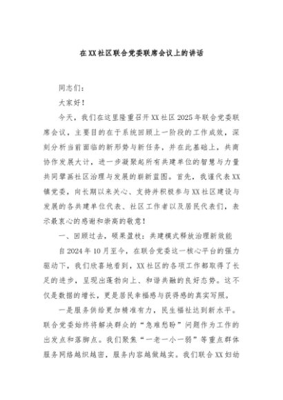 / 【七哥公文】2025年:在XX社区联合党委联席会议上的讲话+更多免费公文+VX:QiGeGongWen2024