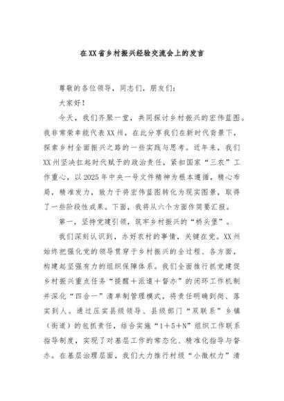 / 【七哥公文】2025年:在XX省乡村振兴经验交流会上的发言+更多免费公文+VX:QiGeGongWen2024